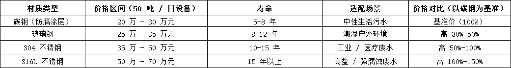 •醫(yī)療廢水:必須配備紫外線消毒系統(tǒng),罐體做防腐處理,價格比同規(guī)模生活污水設(shè)備高 20%-30%,10 噸 / 日設(shè)備約 8 萬元。